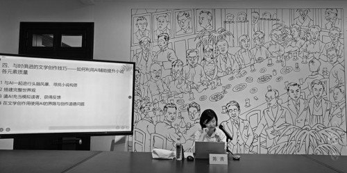 年初,大语言模型呈现爆发式发展。陈茜与同行整个春节都在“驯服”AI——写诗、填词、生成公文、构思小说、架构世界观。“作家要失业了!”大家笑言。但这只是戏谑之言,陈茜对新工具秉持审慎乐观的态度:“AI作为工具,掌握在使用者手中,只要用得好,它就能成为我们思维的延展和扩充。”讲座中,她便分享了“如何利用AI提升小说元素质量”的写作技巧,如资料检索、头脑风暴式对话,将其归纳为“艺术创作的人机协作”。