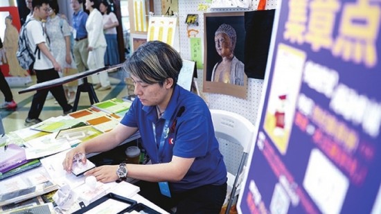 在美国留学后入职上海书画出版社的李一佳对艺术有一种执念,尤其对中国书画“钤印”传统有一种敬畏之心。她坚信小小的印章虽然简单,却承载着传播传统艺术的重任。谈及明年,李一佳眼中闪着期待。上海书画出版社计划尝试墨色渐变效果,让印章更具水墨韵味。而由李一佳亲绘的以世纪出版园区三只猫咪为原型设计的IP形象“有书”“小神仙”“蠹鱼”也已亮相书展,为文创开发注入活力,让更多人感受到书画艺术的温度。