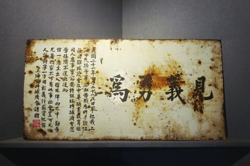 “见义勇为”四个大字,在匾额最醒目处,上面还铭刻着祝惟一先生在淞沪抗战期间的义举,也见证了千千万万上海普通百姓与抗战将士并肩奋斗的决心。如今匾额静静躺在淞沪抗战纪念馆的橱窗中,激励着后来人的爱国情怀,传递着守护和平的美好愿望。