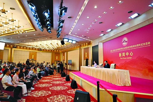 中国人民抗日战争暨世界反法西斯战争胜利80周年纪念活动新闻中心举办第二场记者招待会。新华社 图