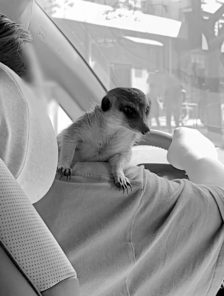 宠物狐獴趴在顺风车车主的身上。网络截图