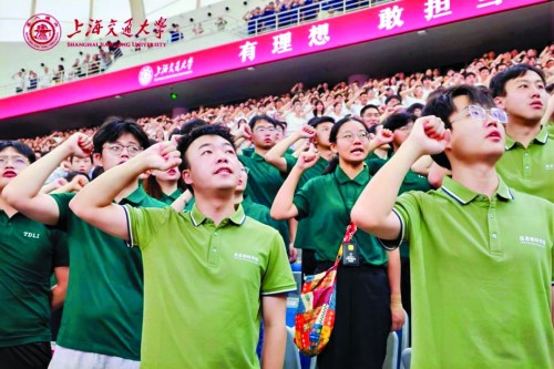 “百年回响,百年荣光,百卅交大,今日有我!”授旗仪式前,新生代表朗诵《何以交大》,回顾交大“因图强而生,因改革而兴,因人才而盛”的历史使命,展现新时代交大人的责任担当。