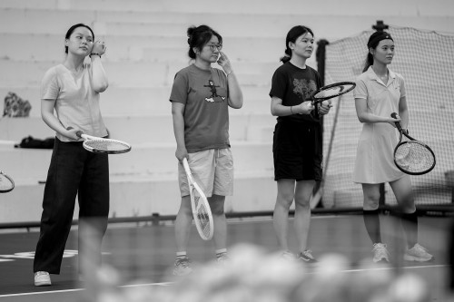 许多第一次接触网球的学员也早早做足准备,提前购买了球拍、网球等运动装备。临近上课时,王祺麟拿着刚买的球拍,来到了球场。“因为是零基础,所以别的装备也不知道要买什么。为了上课我就买了一个球拍。”对于初学者而言,把球击飞是常有的事。在上课的过程中,陈朗让学员两人一组互相训练,无论是陈杰还是王祺麟,或是其他球员,他们的球都时常“飞”到一边,但他们并不因此沮丧。从他们脸上的笑容就不难发现,在这里,他们不仅做到了畅快流汗,球技也在慢慢提升。