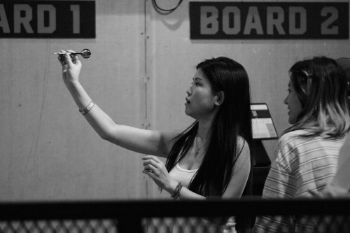 年轻人在玩飞镖。