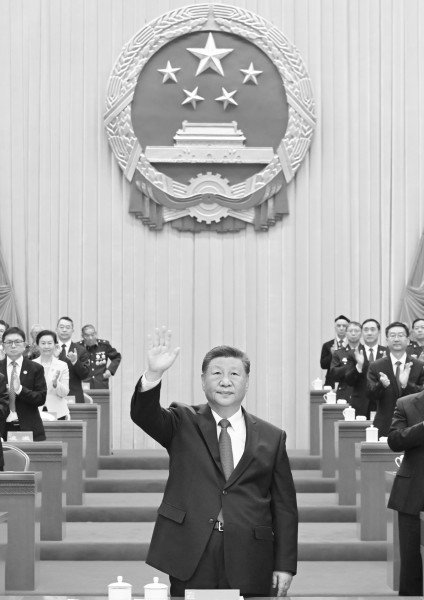 上午10时30分许,在欢快的乐曲声中,习近平等领导同志走上主席台,全场响起长时间的热烈掌声。