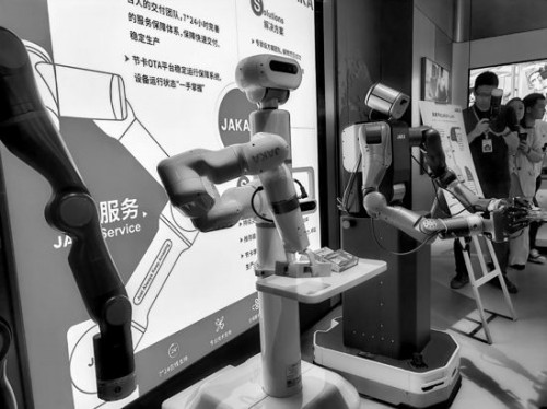 工博会期间,智能养老服务机器人展区十分火爆,前来咨询体验的观众络绎不绝。