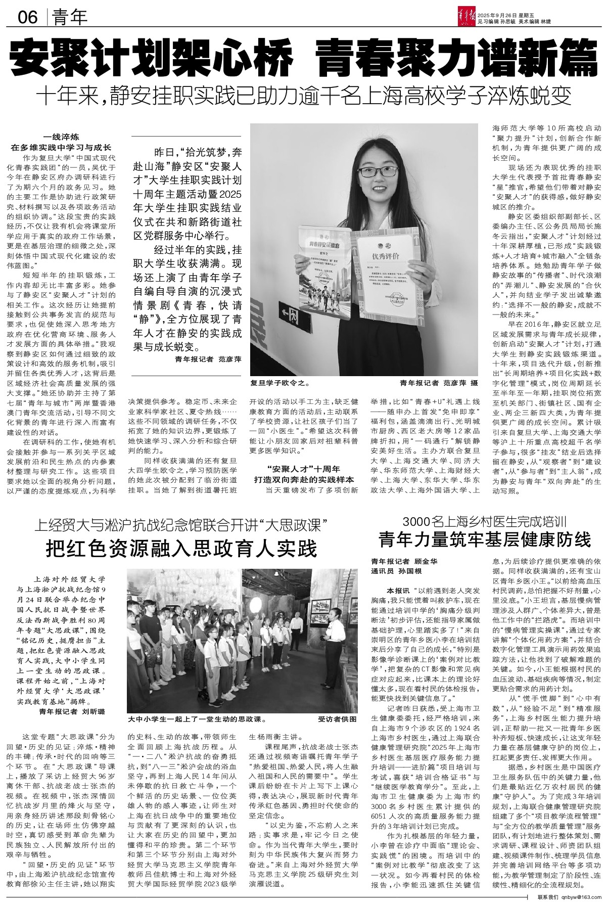 上海对外经贸大学与上海淞沪抗战纪念馆9月24日联合举办纪念中国人民抗日战争暨世界反法西斯战争胜利80周年专题“大思政课”,围绕“铭记历史,挺膺担当”主题,把红色资源融入思政育人实践,大中小学生同上一堂生动的思政课。课程开始之前,“上海对外经贸大学‘大思政课’实践教育基地”揭牌。