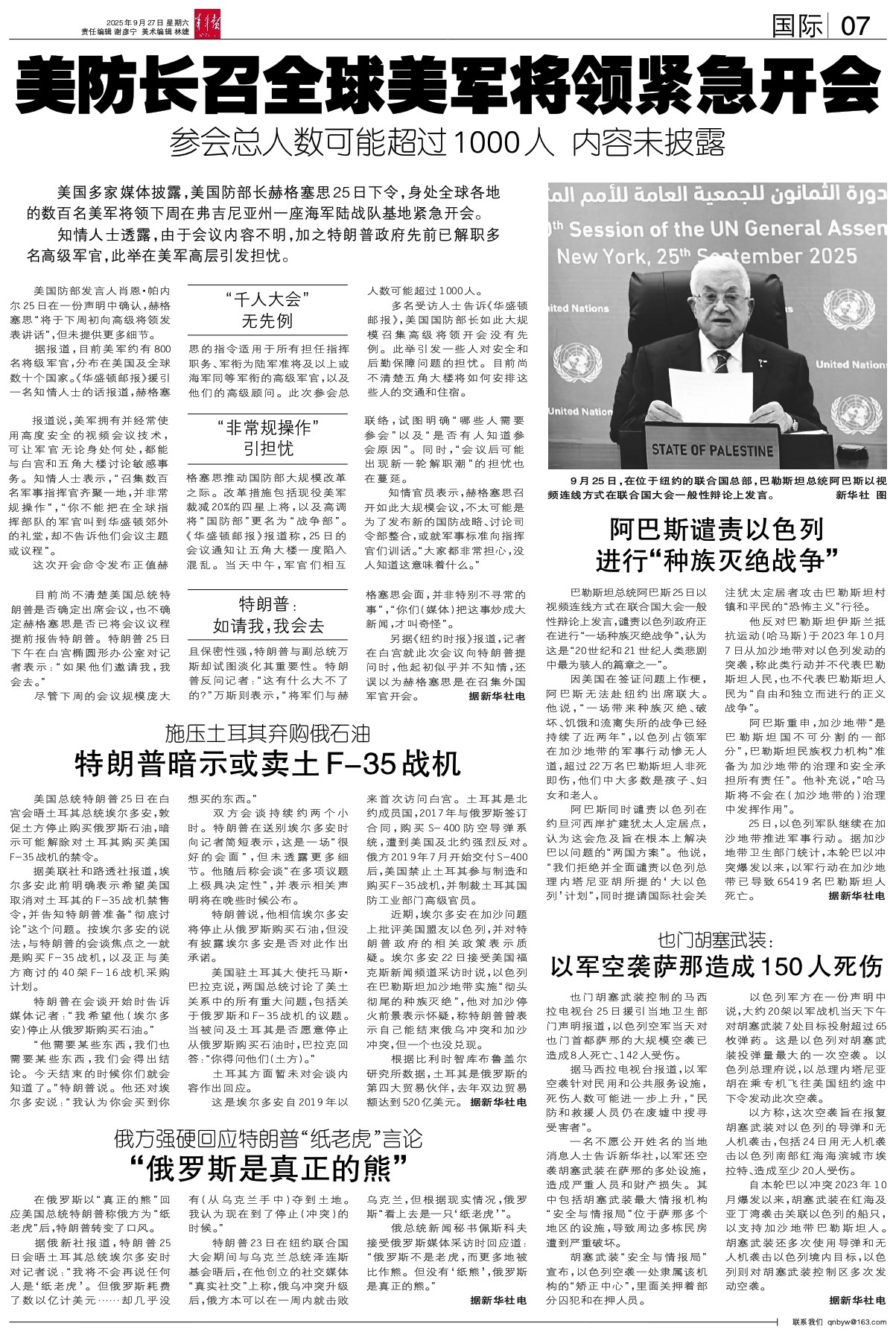 特朗普23日在纽约联合国大会期间与乌克兰总统泽连斯基会晤后,在他创立的社交媒体“真实社交”上称,俄乌冲突升级后,俄方本可以在一周内就击败乌克兰,但根据现实情况,俄罗斯“看上去是一只‘纸老虎’”。