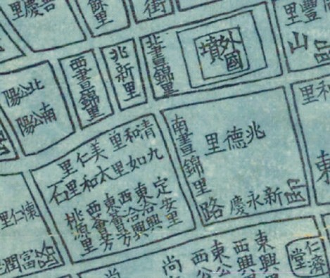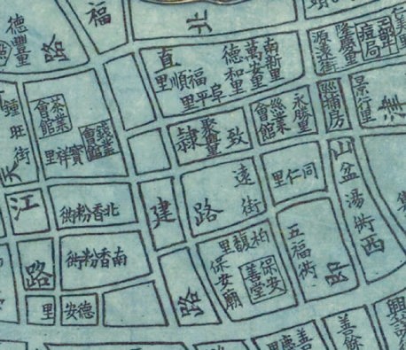19世纪80年代地图上的昼锦里、直隶路、香粉弄、盆汤弄。