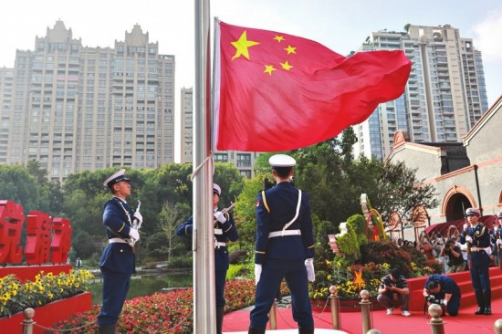 10月1日,中共一大纪念馆举行升旗仪式。青年报记者 施培琦 摄