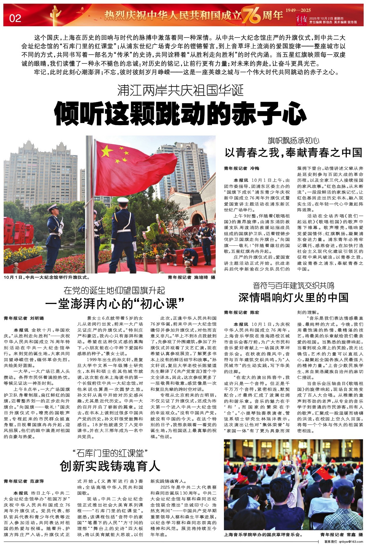 本报讯 10月1日,为庆祝中华人民共和国成立76周年,上海音乐学院在淮海路校区城市音乐会客厅前,为广大市民和音乐爱好者献上一场国庆草坪音乐会。在秋夜的微风中,音符与百年建筑交织共鸣,为“人民城市”的生动实践,写下华美的注脚。