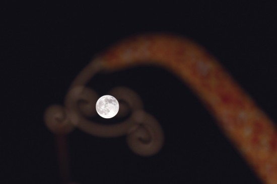2025年中秋月亮最圆时刻发生在10月7日11时48分。今年中秋满月还是一轮“超级月亮”,也就是满月时月球正好位于近地点附近。图为昨日在上海奇迹花园拍摄的月亮。新华社 图