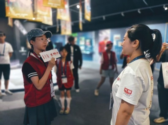 青年报小记者采访赛事青年志愿者。 青年报记者 徐红清 摄