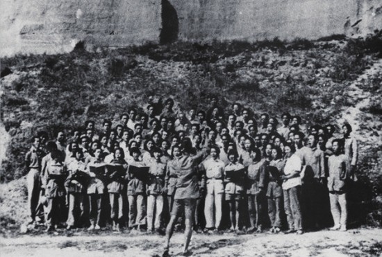 冼星海指挥延安鲁艺合唱队排练《黄河大合唱》。受访者供图