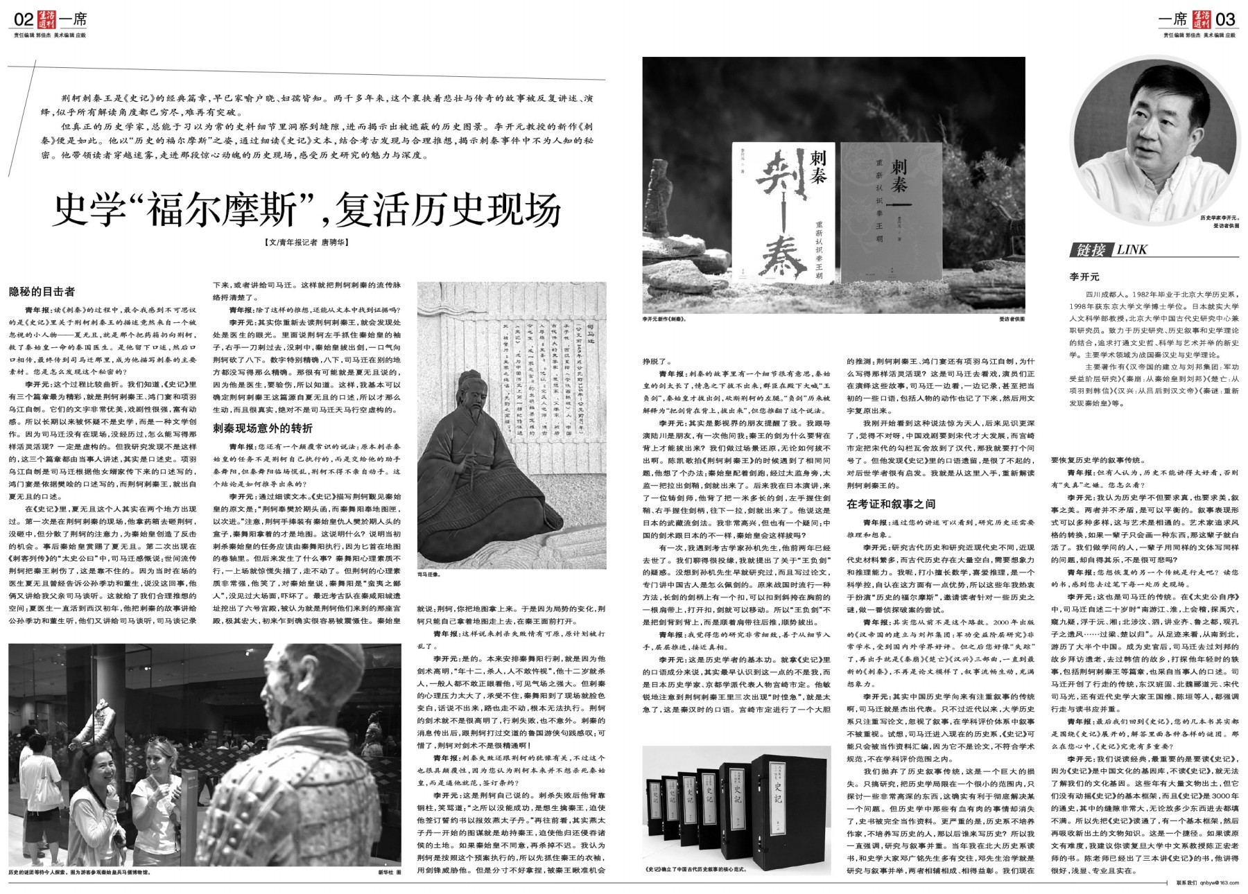 青年报:读《刺秦》的过程中,最令我感到不可思议的是《史记》里关于荆轲刺秦王的描述竟然来自一个被忽视的小人物——夏无且,就是那个把药箱扔向荆轲,救了秦始皇一命的秦国医生。是他留下口述,然后口口相传,最终传到司马迁那里,成为他描写刺秦的主要素材。您是怎么发现这个秘密的?
