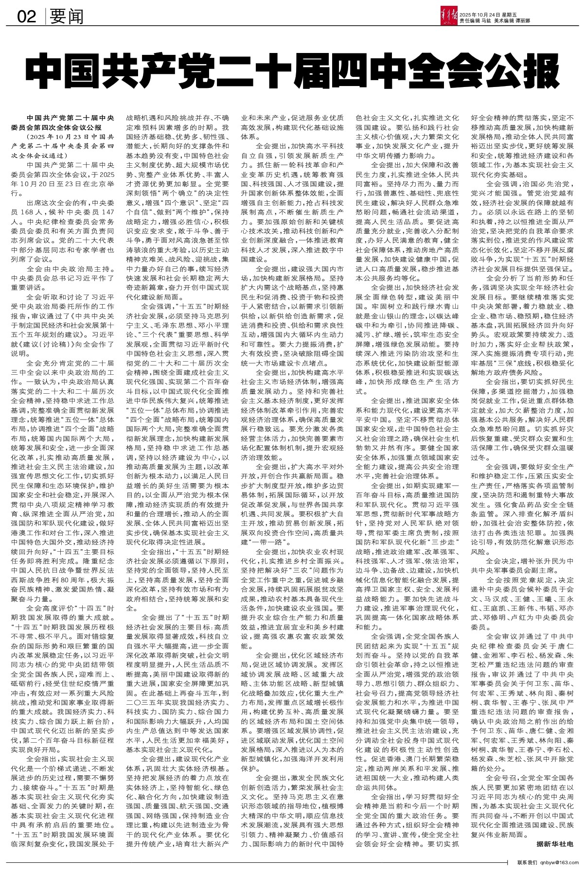 (2025年10月23日中国共产党第二十届中央委员会第四次全体会议通过)