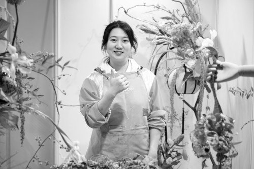 张明天出生在安徽,妈妈是一名幼师。家里没有昂贵的花器,简简单单的玻璃瓶被妈妈用来练习插花。小时候,每次妈妈把插好的鲜花放在客厅,张明天会目不转睛地盯着,花艺的种子就这样悄无声息地在她心中栽下。