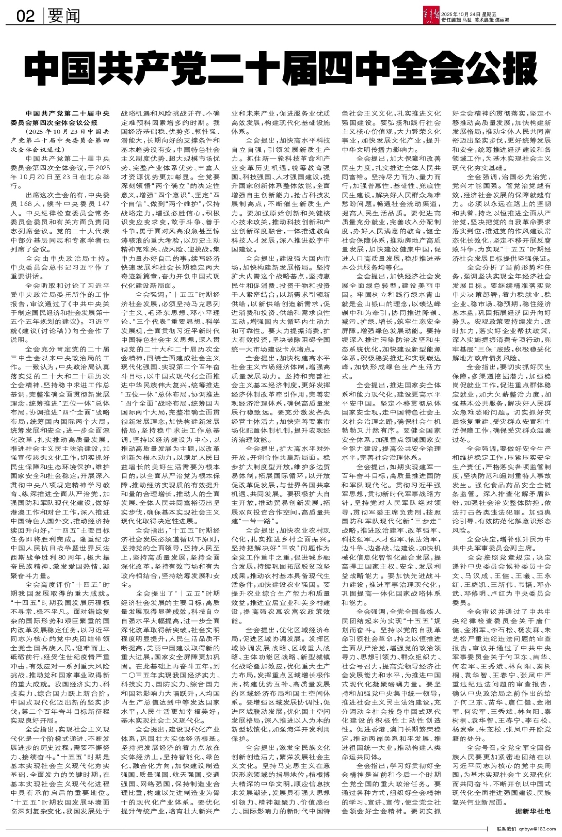 中共中央今天上午举行新闻发布会 介绍解读党的二十届四中全会精神