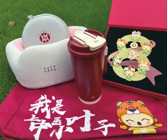 校团委为志愿者准备了不少特色装备和文化产品。其中,第八届进博会志愿者徽章以“8”字为形串联“申小杏”、进博会吉祥物、杏花与上海中医药大学校徽。