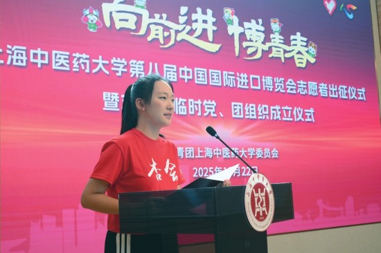 近日,上海中医药大学举行第八届中国国际进口博览会志愿者出征仪式暨志愿者临时党、团组织成立仪式。今年,上海中医药大学共招募志愿者77人,其中中共党员7人,共青团员57人,群众13人;本科生66人,研究生11人。