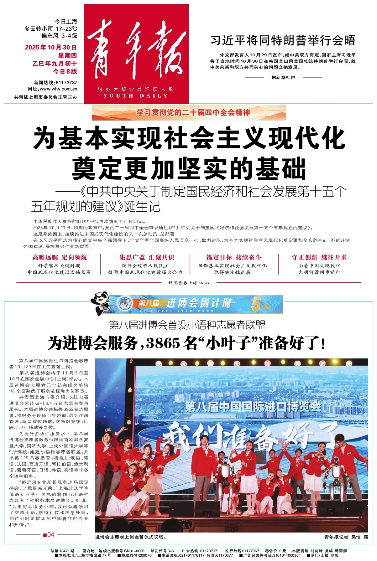 共青团上海市委介绍,以往七届进博会累计吸引3.4万名志愿者参与服务。本届进博会共招募3865名志愿者,将服务于现场引导咨询、展会注册管理、新闻宣传辅助、交易数据统计、医疗卫生辅助等岗位。