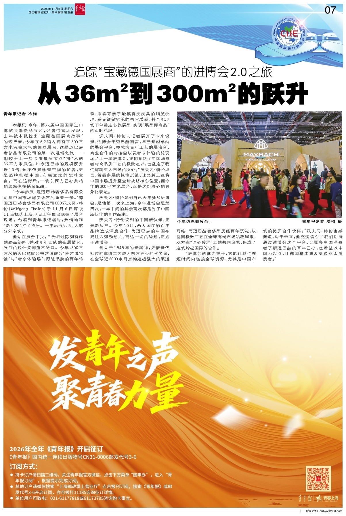 “今年参展,是迈巴赫奢侈品有限公司与中国市场深度绑定的重要一步。”德国迈巴赫奢侈品有限公司CEO沃夫冈·特伦(Wolfgang Thelen)于11月6日深夜11点抵达上海,7日上午便出现在了展台现场。他看到青年报记者时,热情地和“老朋友”打了招呼。一年后再见面,大家分外亲切。