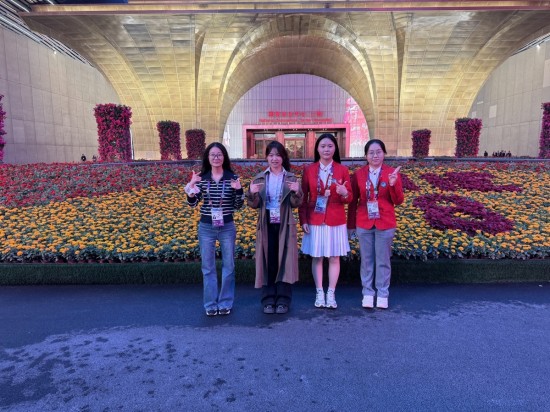 同寝四人在进博会的合影。受访者供图