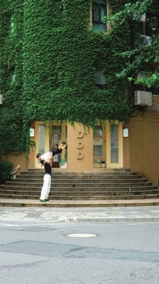 上海能跳舞的马路何止100条?具体去哪里跳,大白是有标准的:既要有上海的特色,建筑还必须有强烈的形式感。大白尤其偏爱外立面对称的建筑,就像他喜欢的美国著名导演韦斯·安德森的电影中那些标志性的对称构图。他常常骑着自行车在上海的大街小巷转悠,也许是从事摄影、摄像工作的缘故,他总能在纷杂的小马路和繁忙的市井生活中捕捉到秩序的美感,发现动人的画面。大白说:“摄影是发现美好,而跳舞是创造美好。”