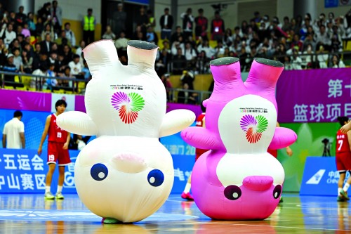 吉祥物在赛前表演。