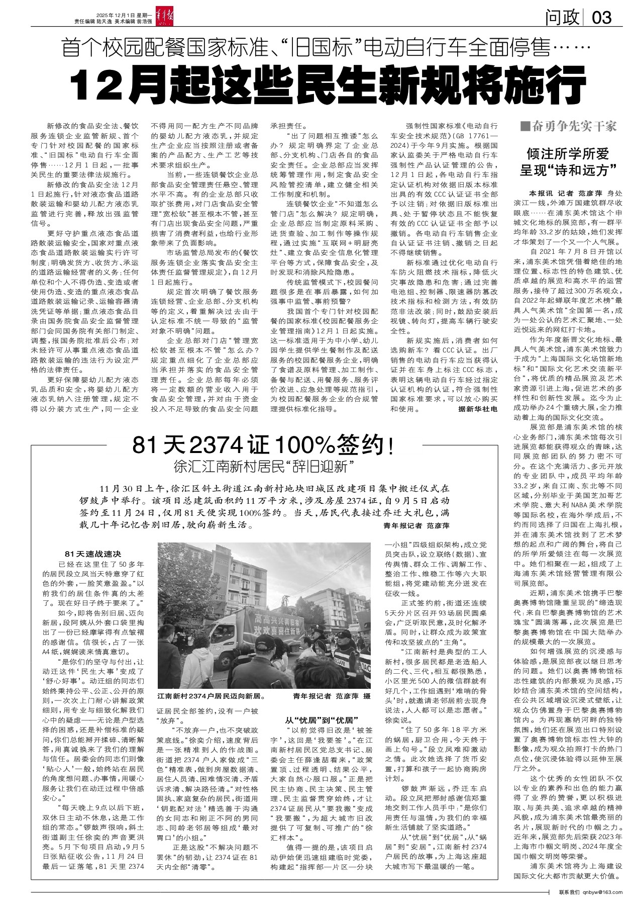 新修改的食品安全法、餐饮服务连锁企业监管新规、首个专门针对校园配餐的国家标准、“旧国标”电动自行车全面停售……12月1日起,一批事关民生的重要法律法规施行。