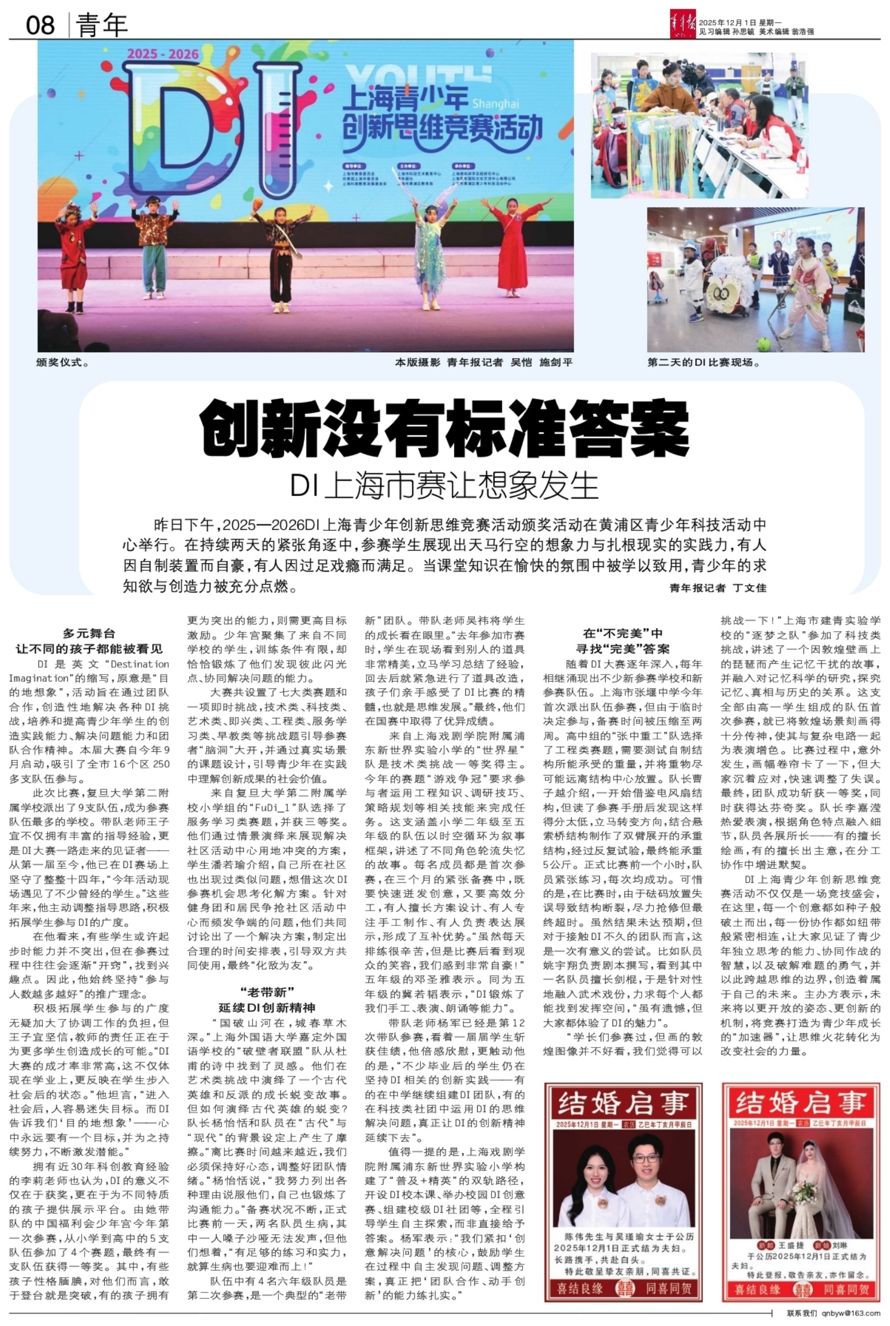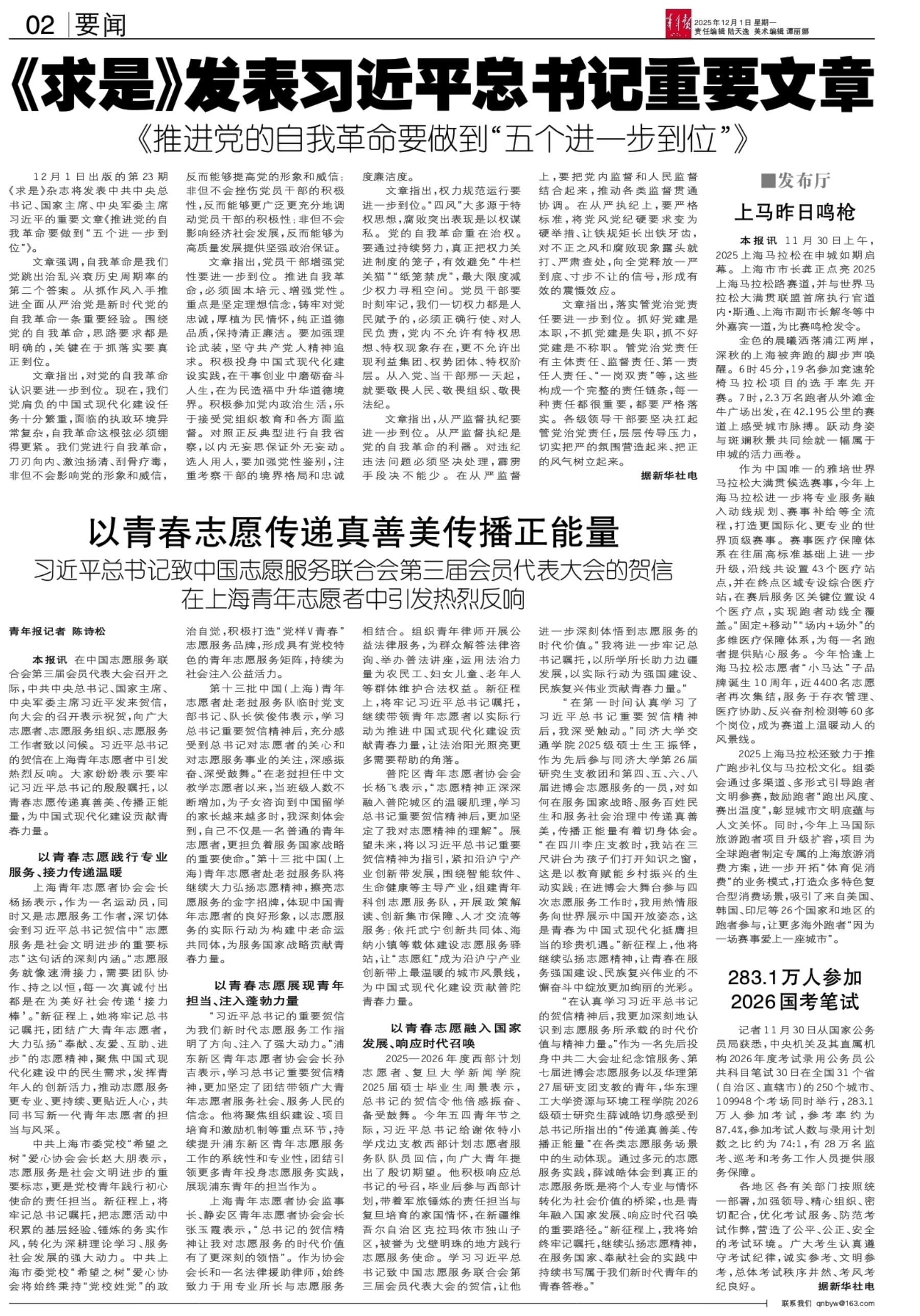 A01 头版 A02 要闻 A03 问政 A04 都市 A05 都市 A06 青春上海 A08 青年