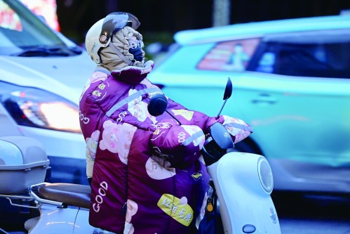 街上行人都换上了冬装。本版摄影 青年报记者 吴恺