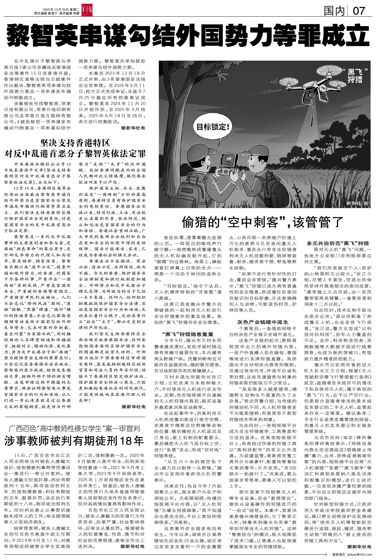 反中乱港分子黎智英与苹果日报3家公司涉嫌违反香港国安法等案件15日在香港开庭。香港特区高等法院当日就案件作出裁决,黎智英两项串谋勾结外国势力罪及一项串谋发布煽动刊物罪成立。