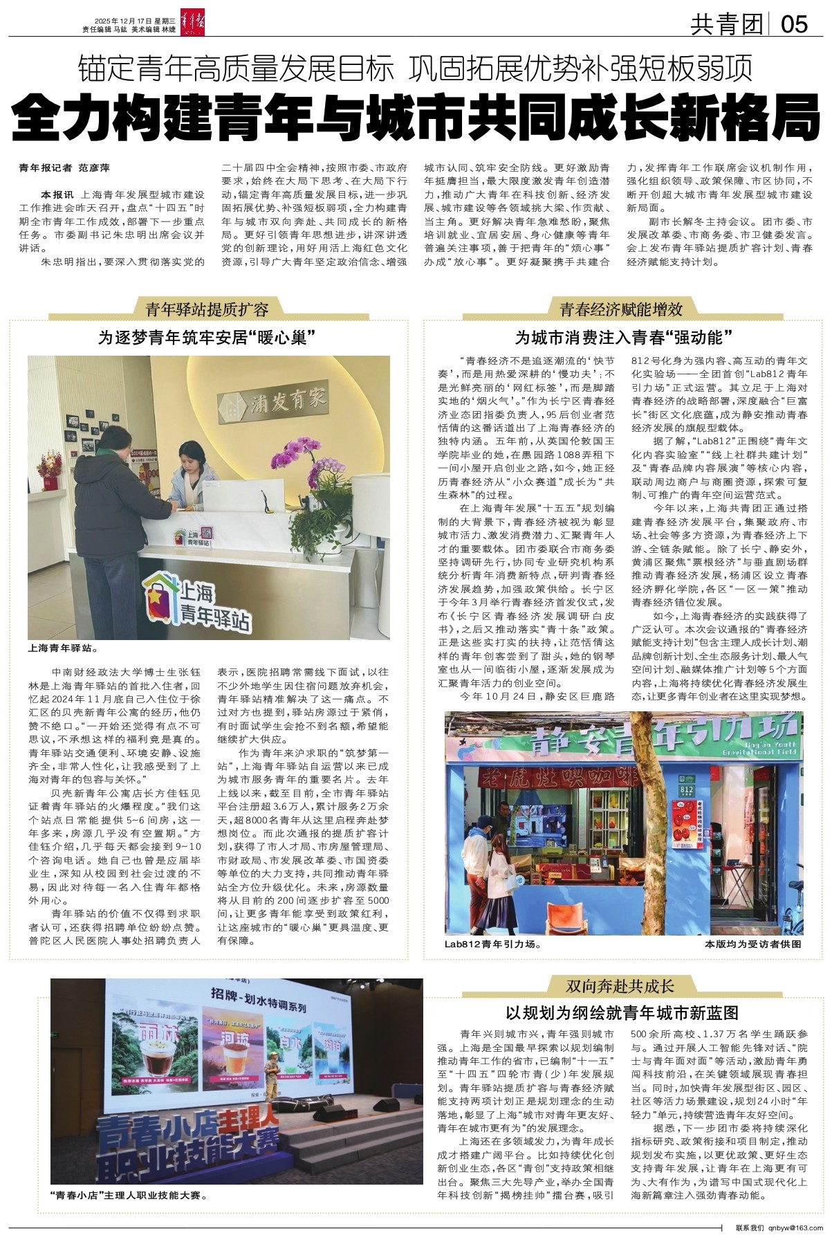 青年兴则城市兴,青年强则城市强。上海是全国最早探索以规划编制推动青年工作的省市,已编制“十一五”至“十四五”四轮市青(少)年发展规划。青年驿站提质扩容与青春经济赋能支持两项计划正是规划理念的生动落地,彰显了上海“城市对青年更友好、青年在城市更有为”的发展理念。