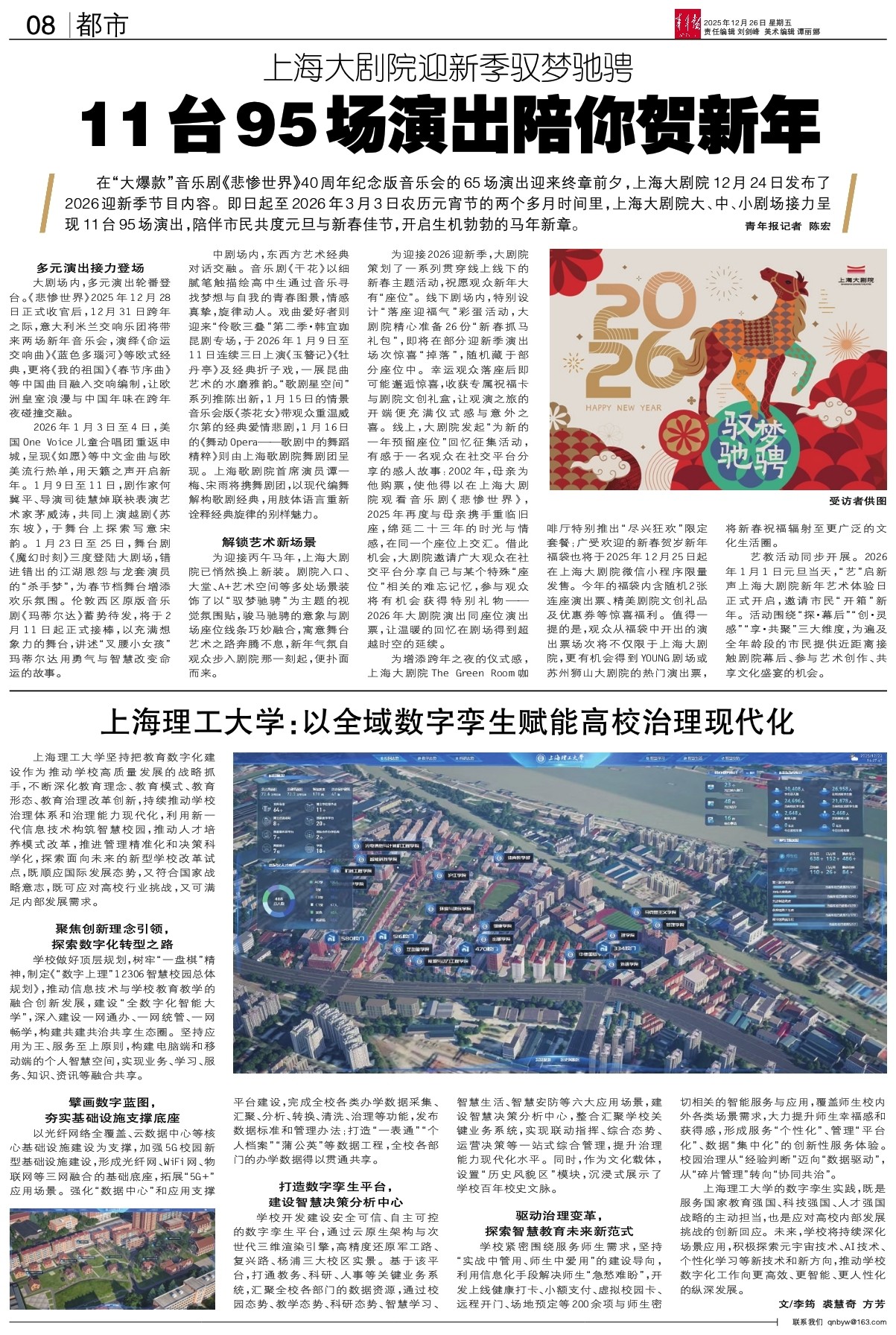 艺教活动同步开展。2026年1月1日元旦当天,“艺”启新声上海大剧院新年艺术体验日正式开启,邀请市民“开箱”新年。活动围绕“探·幕后”“创·灵感”“享·共聚”三大维度,为遍及全年龄段的市民提供近距离接触剧院幕后、参与艺术创作、共享文化盛宴的机会。