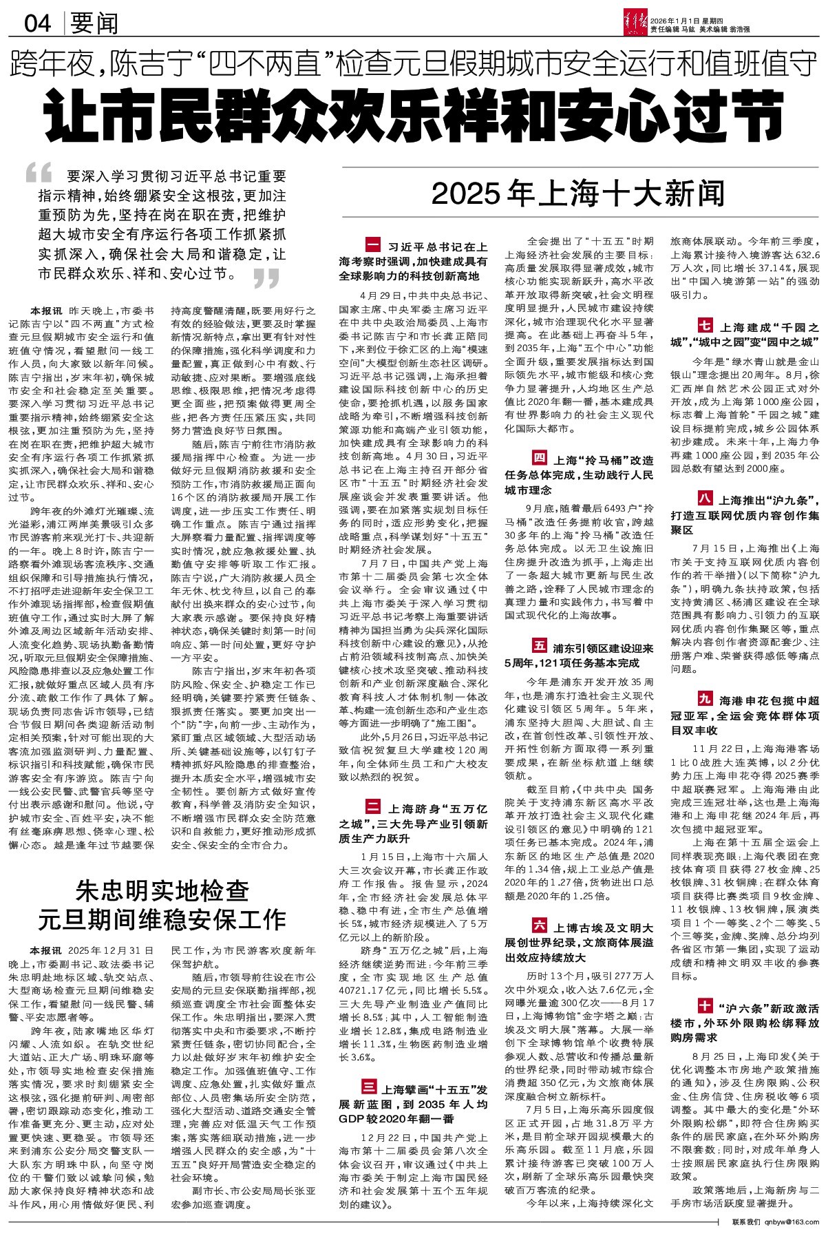 本报讯 2025年12月31日晚上,市委副书记、政法委书记朱忠明赴地标区域、轨交站点、大型商场检查元旦期间维稳安保工作,看望慰问一线民警、辅警、平安志愿者等。