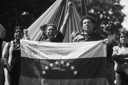 1月3日,在委内瑞拉首都加拉加斯,民众在米拉弗洛雷斯宫附近集会。
