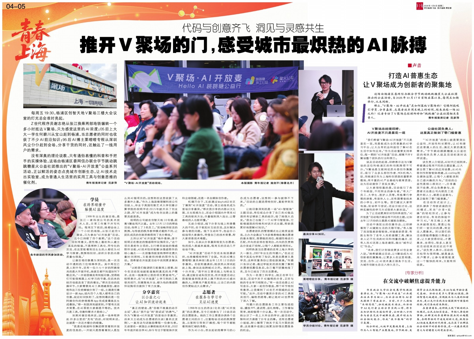 “V聚场·AI开放麦”活动现场。本版摄影 青年报记者 施剑平(除署名外)