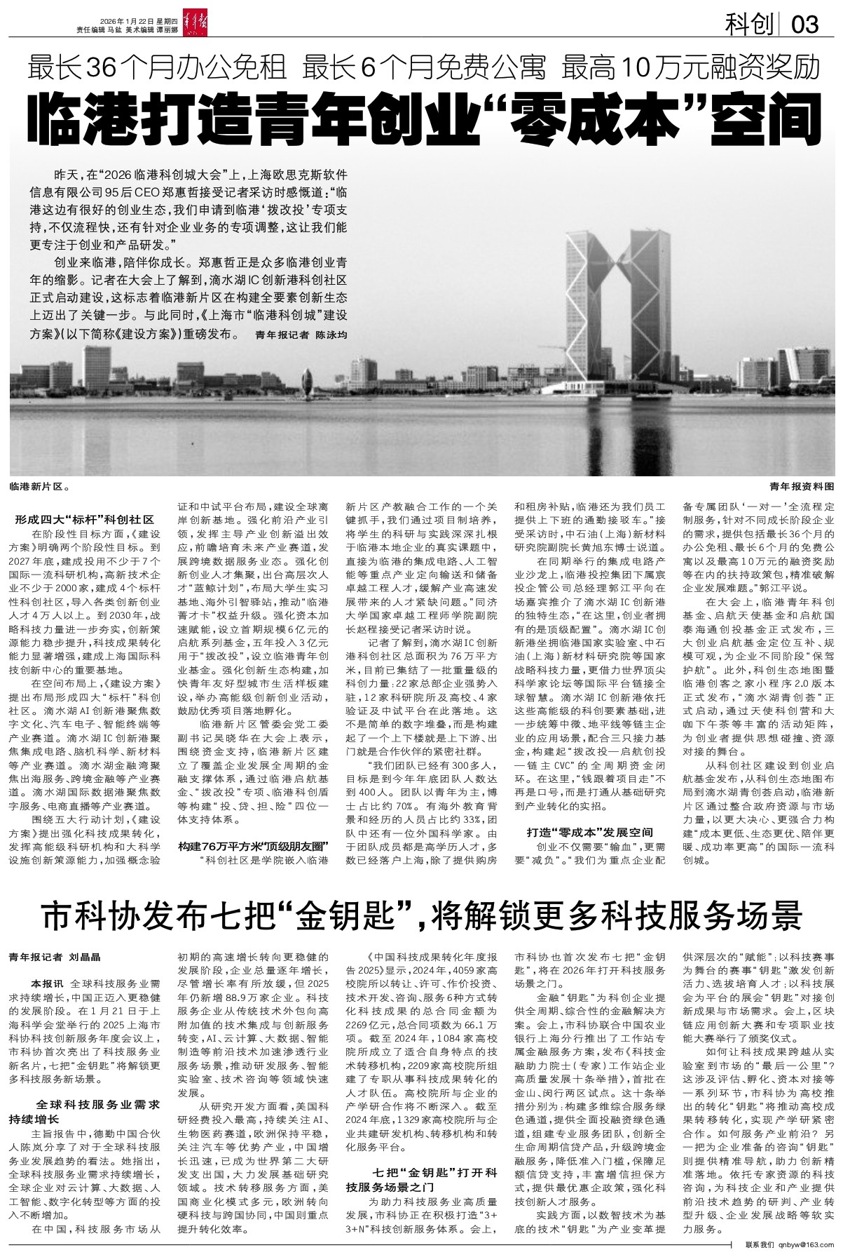 从科创社区建设到创业启航基金发布,从科创生态地图布局到滴水湖青创荟启动,临港新片区通过整合政府资源与市场力量,以更大决心、更强合力构建“成本更低、生态更优、陪伴更暖、成功率更高”的国际一流科创城。