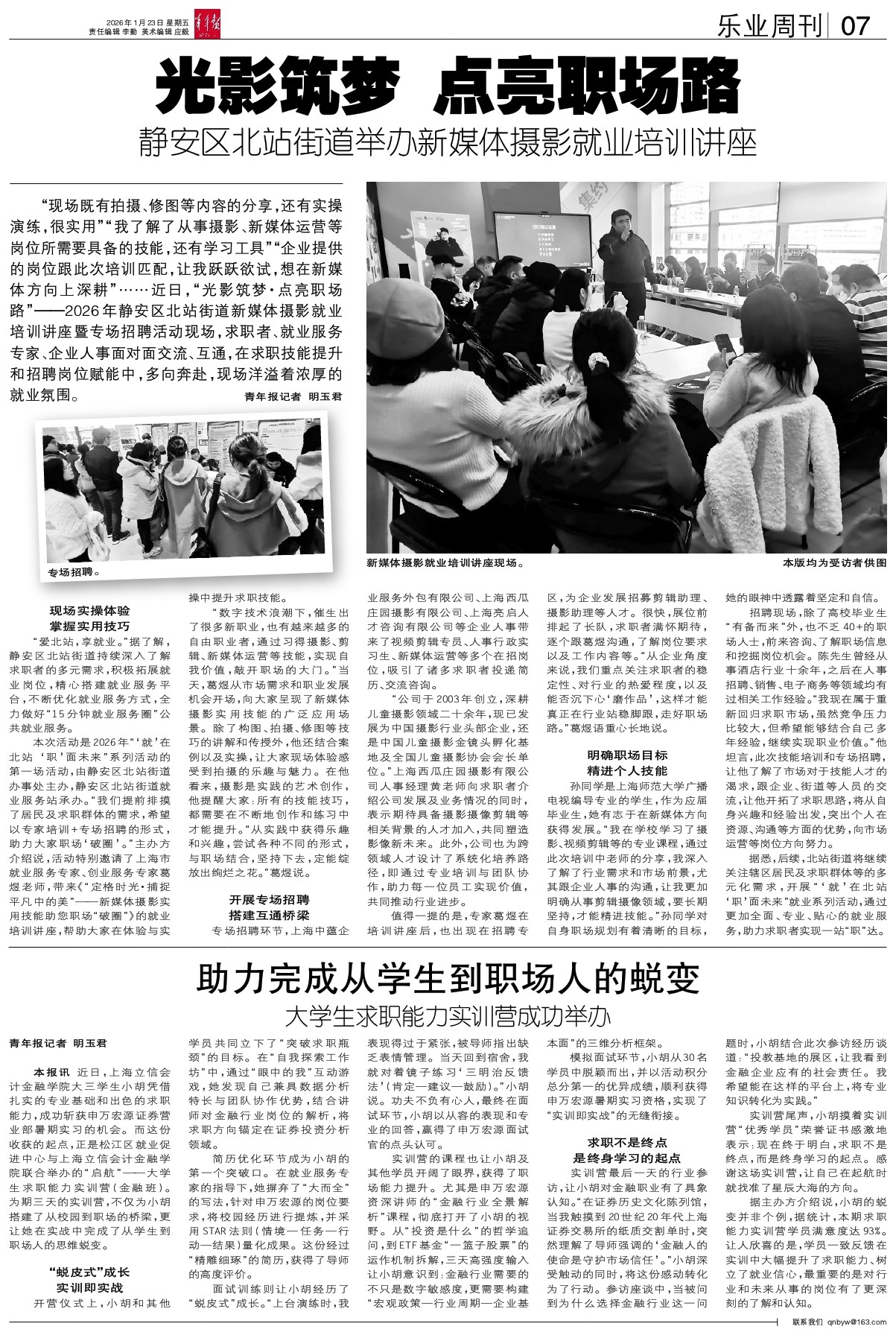本报讯 近日,上海立信会计金融学院大三学生小胡凭借扎实的专业基础和出色的求职能力,成功斩获申万宏源证券营业部暑期实习的机会。而这份收获的起点,正是松江区就业促进中心与上海立信会计金融学院联合举办的“启航”——大学生求职能力实训营(金融班)。为期三天的实训营,不仅为小胡搭建了从校园到职场的桥梁,更让她在实战中完成了从学生到职场人的思维蜕变。
