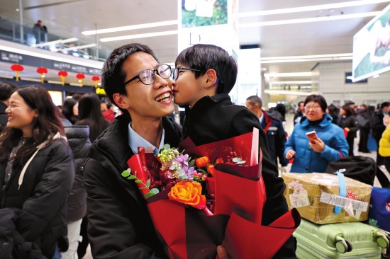 团聚时刻满是喜悦与激动。 青年报记者 吴恺 摄