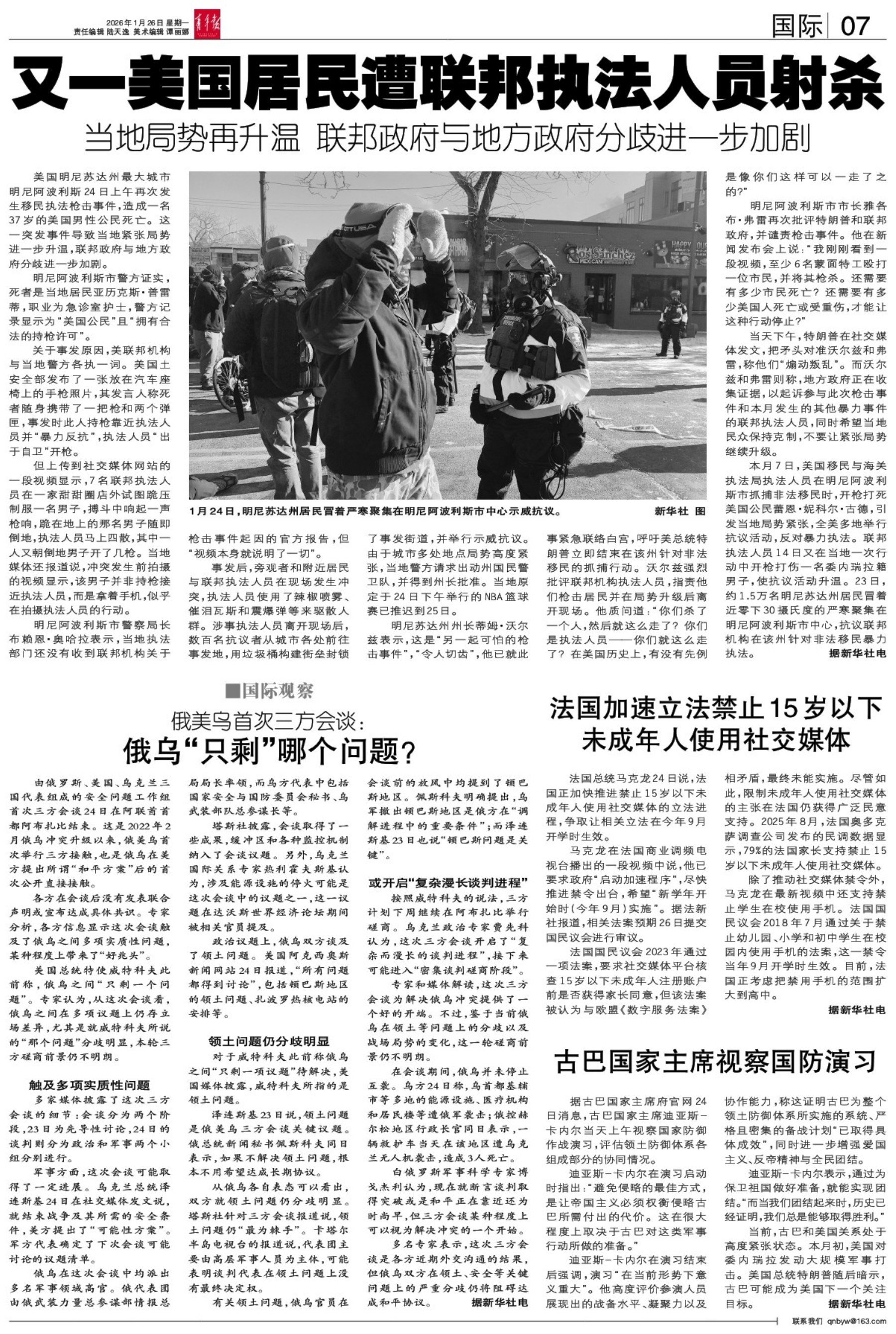 A01 头版 A02 要闻 A03 青年 A04 都市 A05 都市 A06 大学 A07 国际 A08 都市
