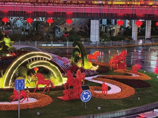 小陆家嘴明珠环岛中央设置的马年主题艺术花坛。 本版摄影青年报记者 吴恺