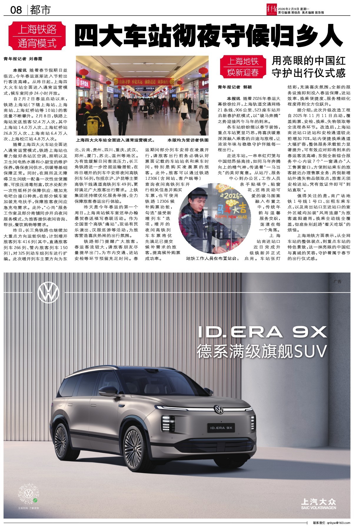昨天是今年春运的第一个周日,上海南站候车室还举办翰墨贺春送福写春联活动。作为全国首个高铁“痛站”,现场有民乐演出、汉服巡游等活动,为旅客营造喜庆热闹的出行氛围。