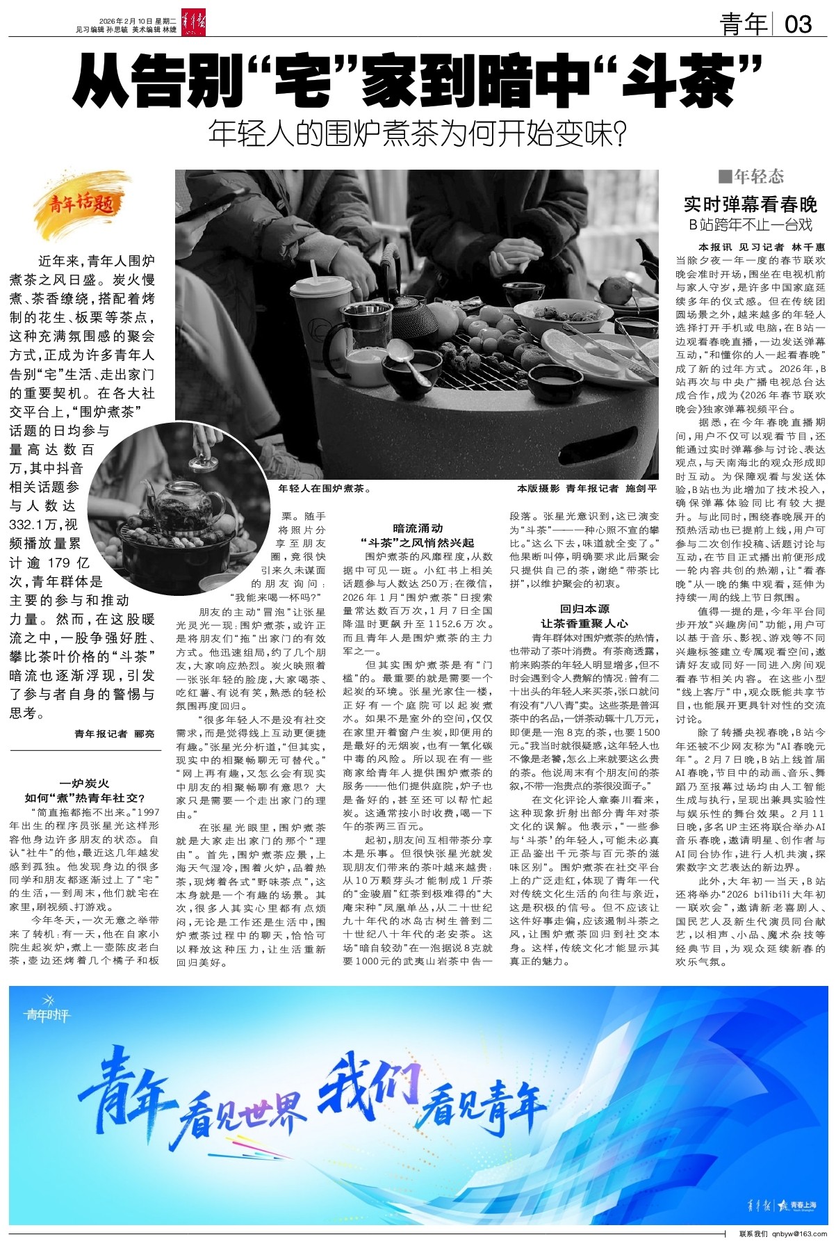 本报讯 见习记者 林千惠 当除夕夜一年一度的春节联欢晚会准时开场,围坐在电视机前与家人守岁,是许多中国家庭延续多年的仪式感。但在传统团圆场景之外,越来越多的年轻人选择打开手机或电脑,在B站一边观看春晚直播,一边发送弹幕互动,“和懂你的人一起看春晚”成了新的过年方式。2026年,B站再次与中央广播电视总台达成合作,成为《2026年春节联欢晚会》独家弹幕视频平台。