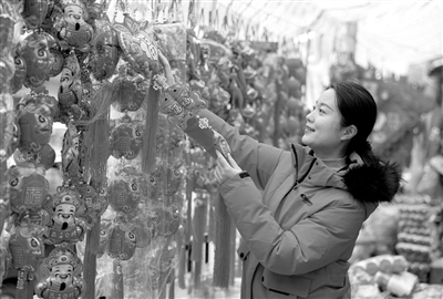 在合肥华润万象城的年货市集,“00后”女孩赵阳和父母一起兴致勃勃地采买。