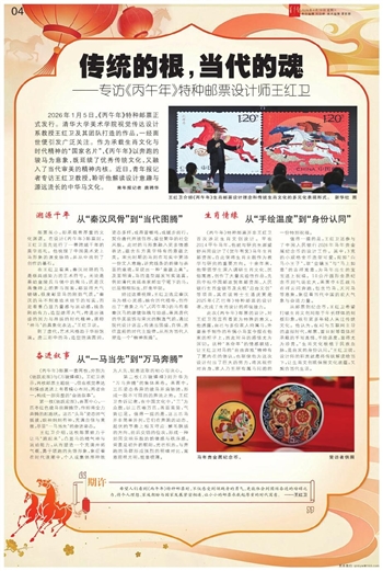 希望人们看到《丙午年》特种邮票时,不仅感受到领跑者的勇气,更能体会到团结奋进的磅礴之力,将个人理想、家庭期盼与国家发展紧密相连,让小小的邮票承载起厚重的时代寓意。——王红卫