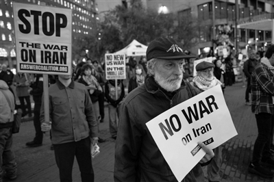 3月2日,人们在美国加利福尼亚州旧金山参加集会,抗议美国对伊朗发动军事打击。新华社 图