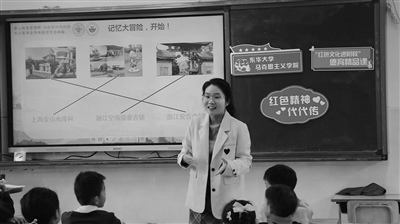 东华大学宣讲团成员杨宇璇在东华附小讲课。青年报资料图