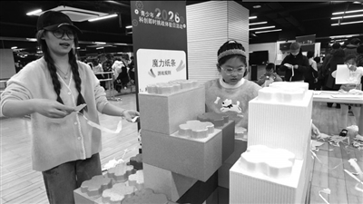 把A4纸尽可能撕出长条,将其围绕在泡沫城堡上,圈数越多越好。在“魔力纸条”项目前,记者见到不少孩子正全神贯注地撕着纸条,与周围的热闹形成鲜明对比。而在不远处,任哲正在和爸爸一起排队体验非遗漆扇,早早来到现场的他只剩下两个项目还没体验。“今天第一次体验同时做这么多项目,而且全部参与能够领取小奖品,非常开心。”任哲就读于上海市真光小学二年级,他最喜欢的项目是“能源归位”,通过操控倾斜的平台,将三个不同颜色的球推进对应颜色的洞里。偏爱操控类体验的他也热衷于机器人编程,除了在现场项目中过了一把瘾外,课外已经积累了不少经验,编程设计的小车感应到墙体就能自动转弯,“我很喜欢机器人,会继续学下去。”